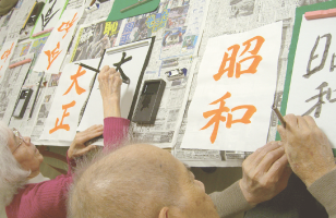 作品は個人作品、皆んなで協力して仕上げる壁画飾りなどがあり、細かい作業に集中することで手先のリハビリも担っております。 |